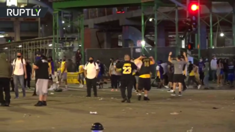 (2020-10-12). WATCH police fire tear gas as celebrations over LA Lakers NBA championship get out of hand. rt.com